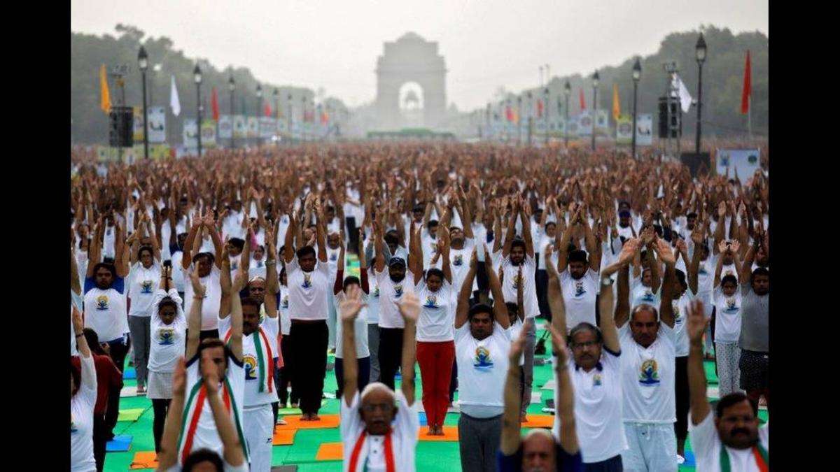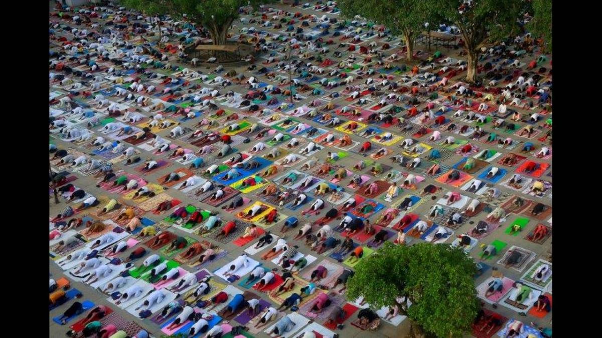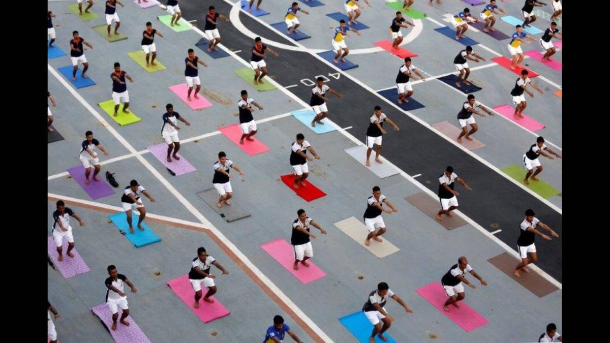 Στις 21 Ιουνίου εκατοντάδες χιλιάδες άνθρωποι κάθε ηλικίας συνέρρευσαν σε δημόσιους χώρους στην Ινδία και έκαναν ασκήσεις γιόγκα πάνω στα χρωματιστά ειδικά στρώματα για αυτού του τύπου τη γυμναστική.