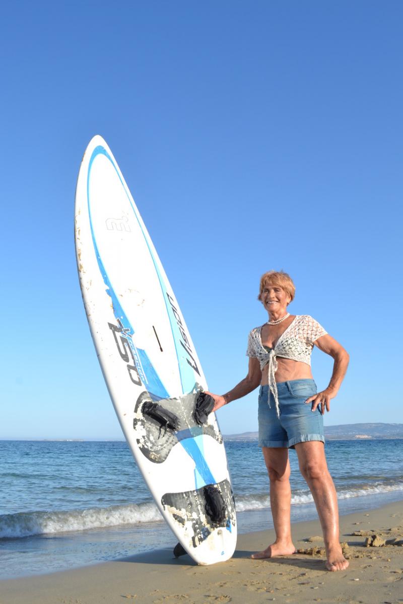Όμως, τελικά, η ηλικία είναι μόνο ένας αριθμός, όπως όλοι λένε γνωρίζοντάς την από κοντά. Στην ομάδα του Διάπλου της είναι ο Γιάννης Σκουρογιάννης και η Αιμιλία Λυμπεροπούλου που εμπνέονται από την μεγάλη κυρία του windsurf που βγαίνει στη θάλασσα με τις πέρλες να της στολίζουν το λαιμό, γιατί απλά «εκεί είναι το φυσικό τους περιβάλλον».